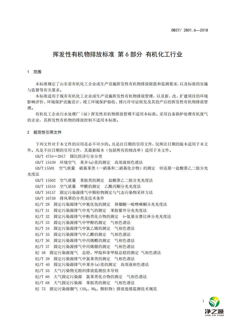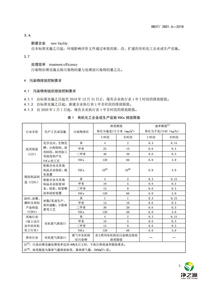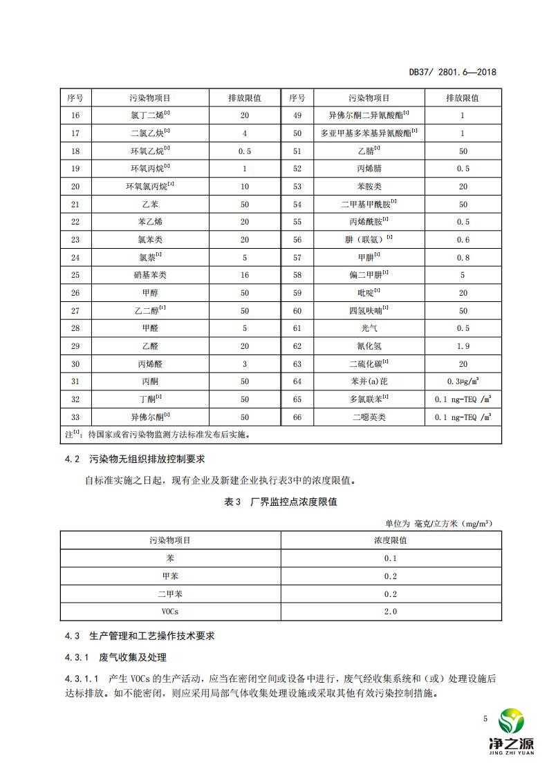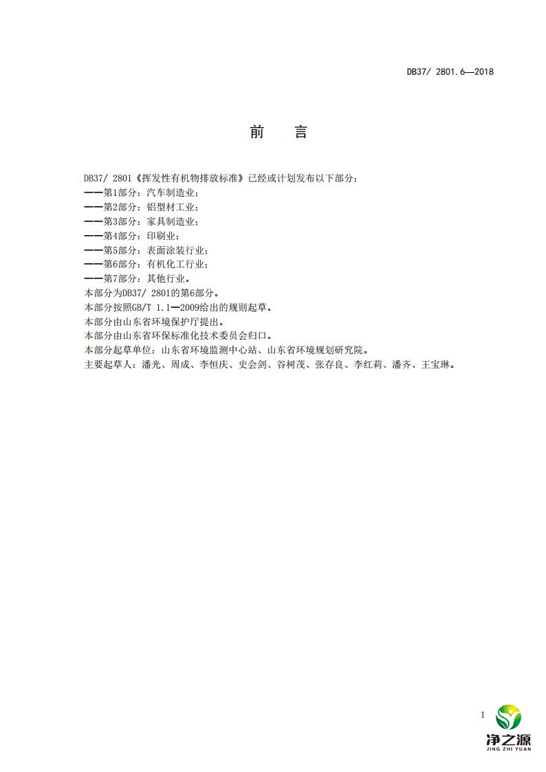 山东省挥发性有机物排放标准-有机化工行业DB372801.6-2018