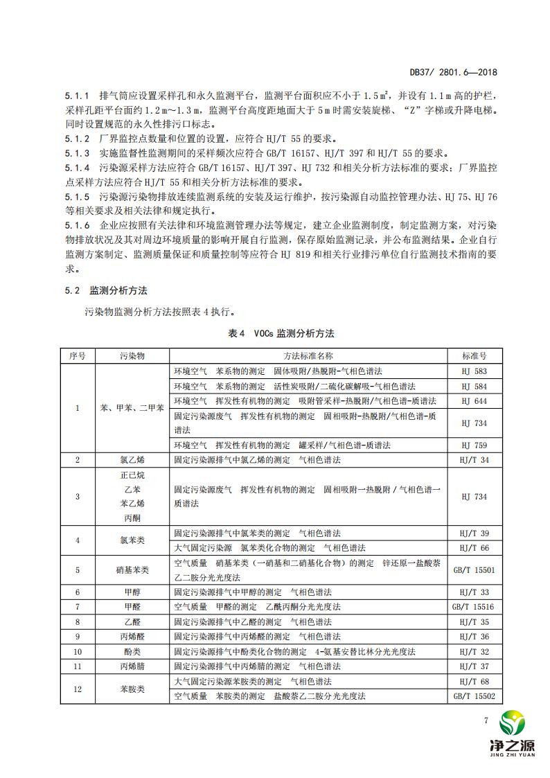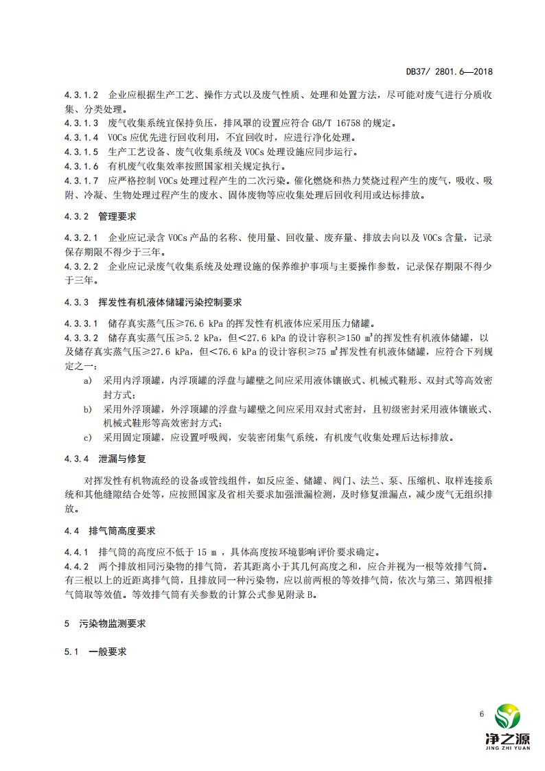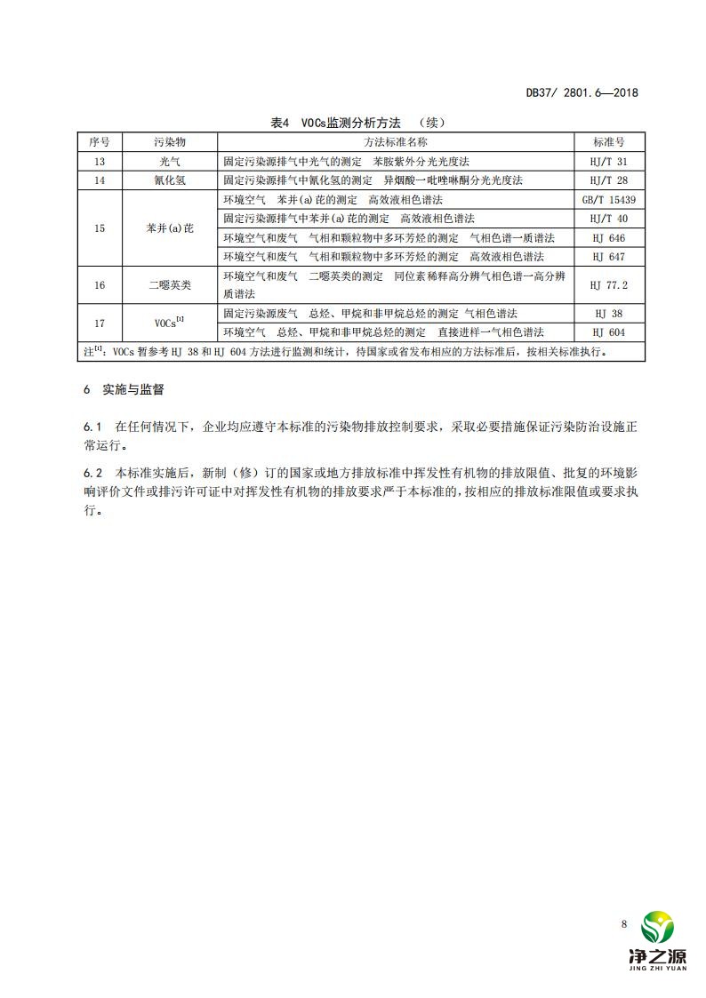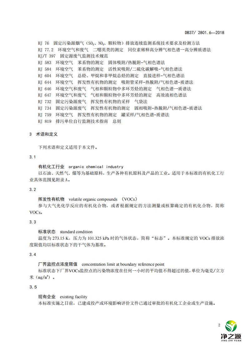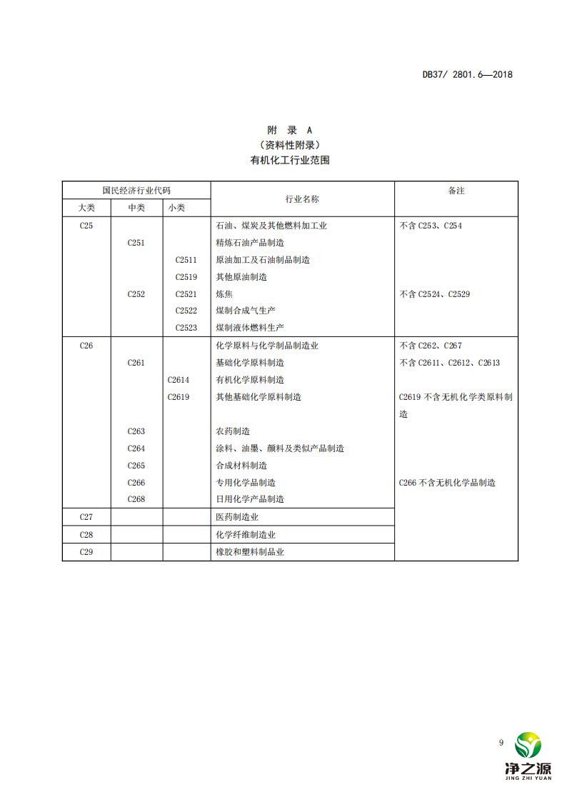 山东省挥发性有机物排放标准-有机化工行业DB372801.6-2018